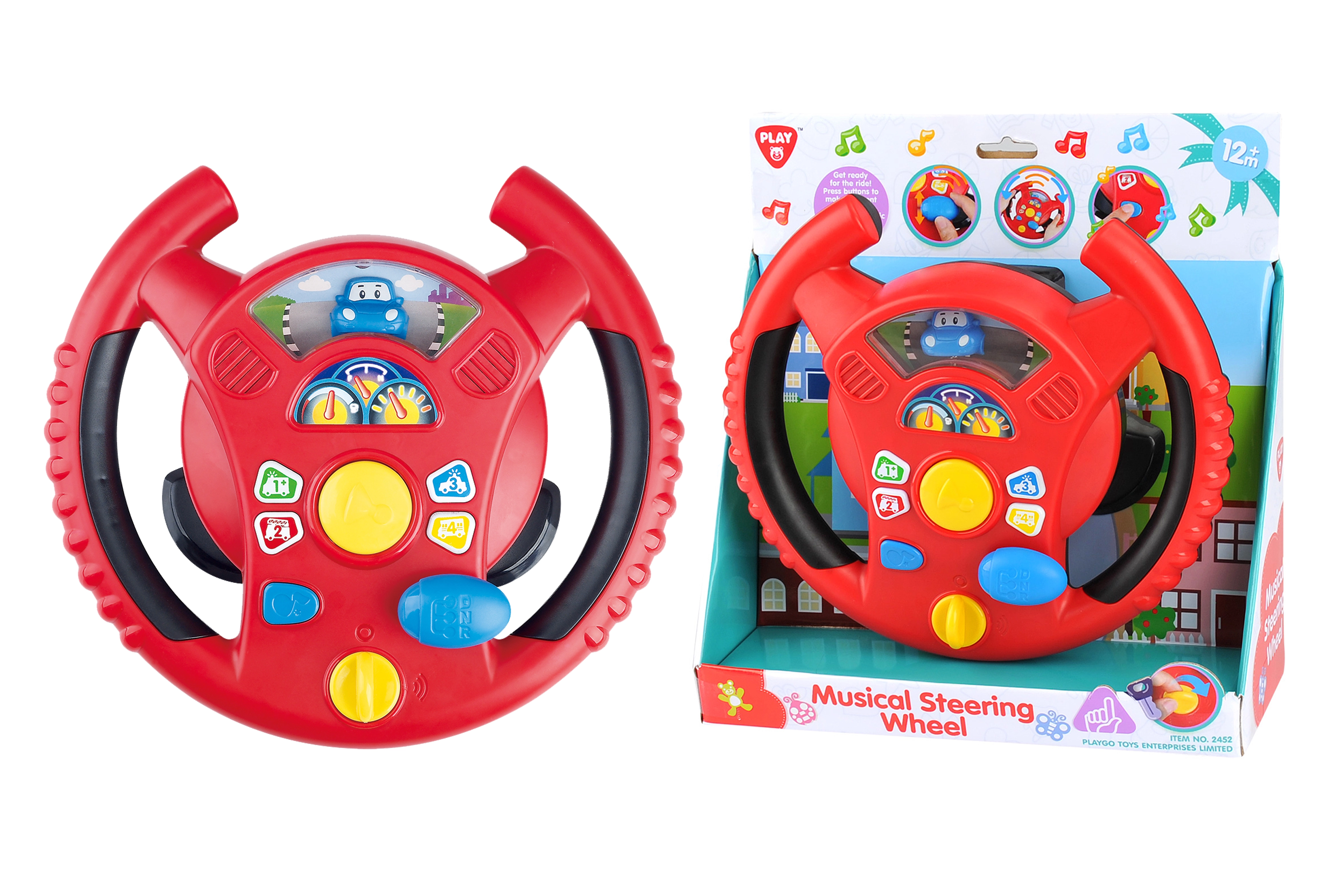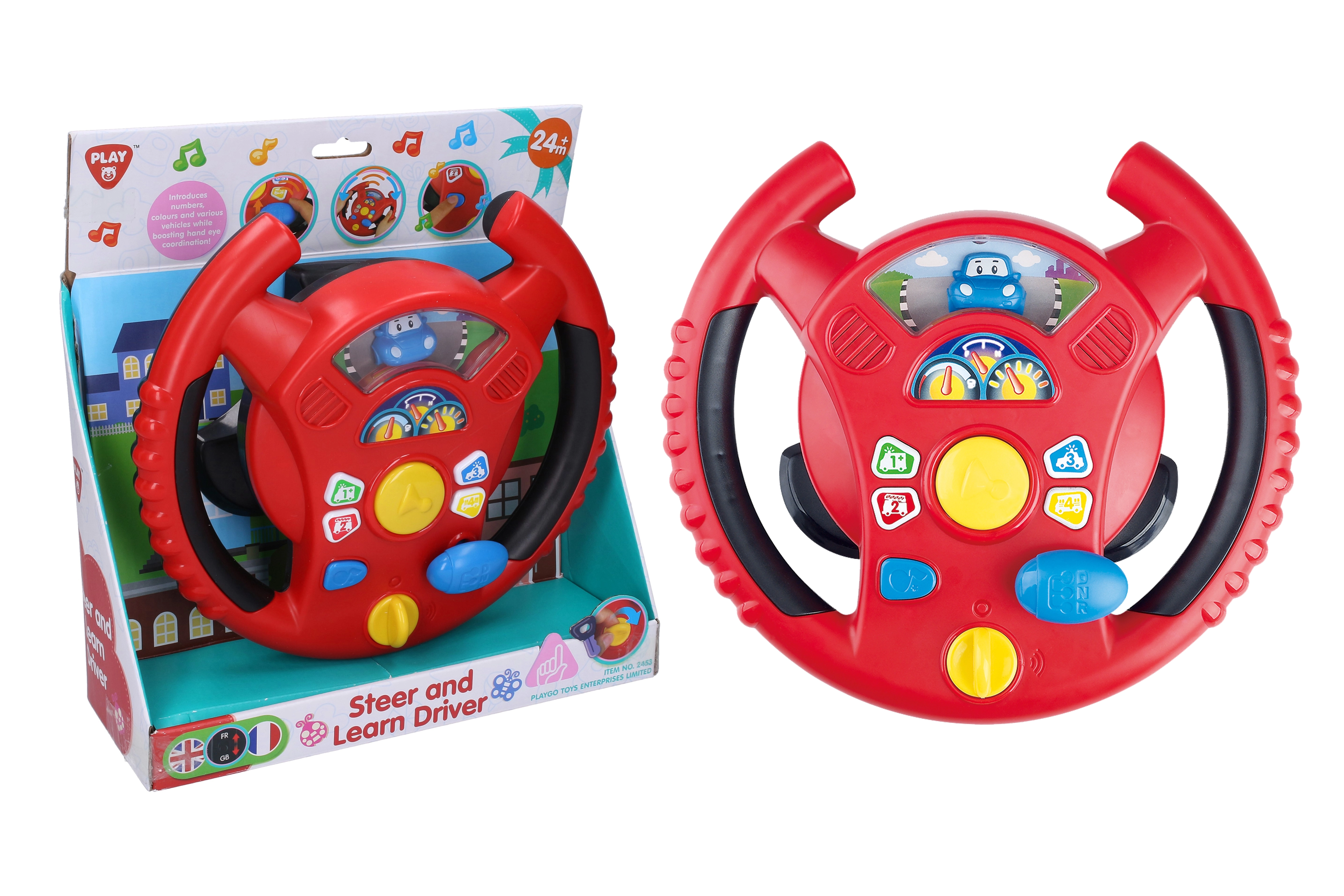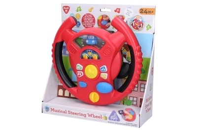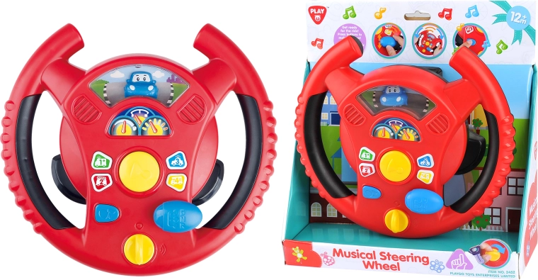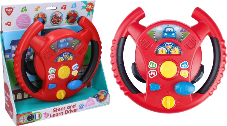 Det interaktive rat fra Playgo giver børn en sjov leg med at køre i en mini-by. En drejekontakt på undersiden af rattet bruges til at tænde, i midten finder du hornet, til højre en gearstang til kørelyde, og på ratkransen små knapper med toner og melodier. Børn vil nyde de realistiske effekter, der minder om en rigtig bil, samtidig med at de udvikler koordination og fantasi.