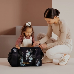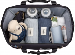 Takket være de justerbare bæremuligheder og muligheden for montering på barnevognens håndtag er tasken ideel både i byen og på farten. I pakken medfølger et praktisk skifteunderlag til hygiejnisk bleskift og en toilettaske til kosmetik eller småting.