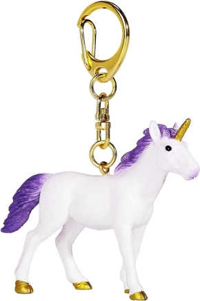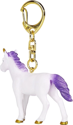 Denne stilfulde MOJO-nøglering i form af en hvid enhjørning med lilla manke og hale fanger opmærksomheden med det samme. Takket være metalringen og karabinhagen kan den nemt sættes på nøgler, håndtaske eller skoletaske. Håndmalingen giver hvert stykke et originalt udtryk og realistiske detaljer.