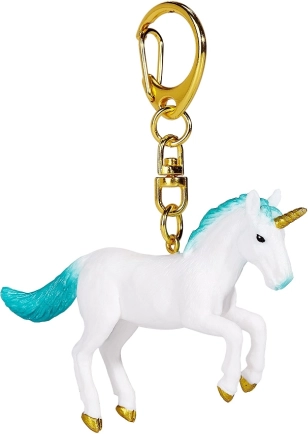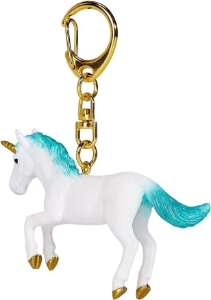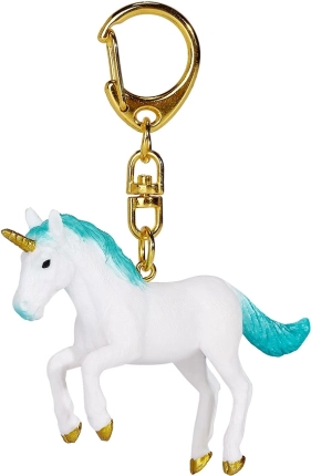 Denne enhjørning med turkis manke og gyldne detaljer er ideel som stilfuldt tilbehør til nøgler, håndtaske eller skoletaske. Takket være den høje kvalitet er nøgleringen ikke kun dekorativ, men også praktisk og holdbar til daglig brug.
