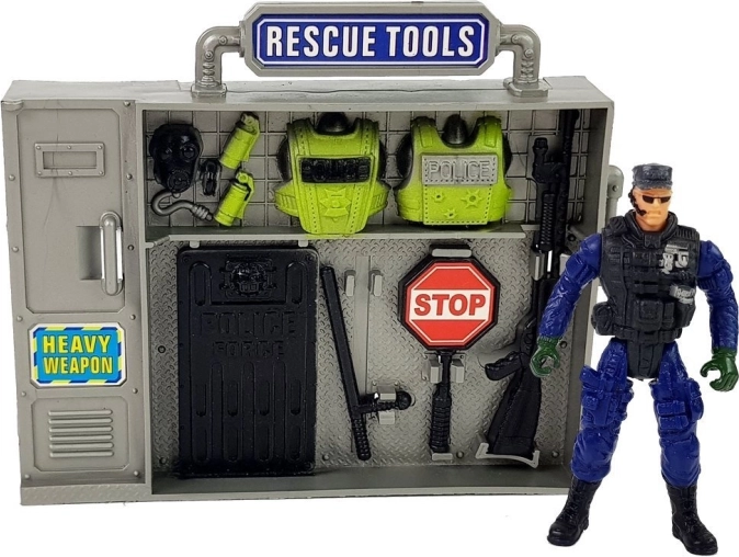 Dette komplette politisæt trækker børn ind i en verden af indsatser og missioner. Den store helikopter med funktionsknapper, der aktiverer lys- og lydeffekter, skaber stemningen af en ægte mission, mens politibilen og kajakken udvider mulighederne for leg på land og vand. En politifigur og tematiske accessories sørger for det hele.