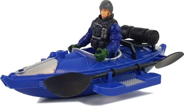 Detaljeret kajak med udstyr og figur udvider legescenarierne med redningsaktioner på vandet og i svært tilgængeligt terræn.
