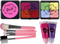 Sættet består af forskellige tilbehør til at lege og eksperimentere med makeup. Fingeradskilleren giver præcis opdeling af fingre, når man tyr til neglelak. Den pink, glitrende neglefil er sød og behagelig at røre ved, giver mulighed for at forme neglene. 3 neglelakker i lyserød, gul og blå farve, så børnene kan vælge mellem forskellige farver og skabe forskellige designs på neglene. To lipglosses, der giver læberne glans og en let glitrende effekt. Rouge lader en skabe en rødmet effekt og tilføje et charmerende touch til ansigtet. Børsterne til makeup giver præcis applikation af kosmetik. Med øjenskygge-sættet kan børnene eksperimentere med øjenmakeup og skabe forskellige effekter. Sættet med 4 læbestifter i kompakten æske tilbyder et udvalg af forskellige nuancer, så du kan matche læbeudseendet med enhver stil.