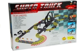 Banen på ca. 11,57 m (afrundet 12 m) omfatter 2 loops, hævede broer, startrampe og dekorationer som “bjerge”, “vandfald” og tunnel for ekstra stemning. Beskyttende barrierer forhindrer bilerne i at ryge af, og gul markering af skarpe sving hjælper til en jævn og hurtig kørsel. Det omfattende tilbehør og nem montering og afmontering gør sættet ideelt som gave.