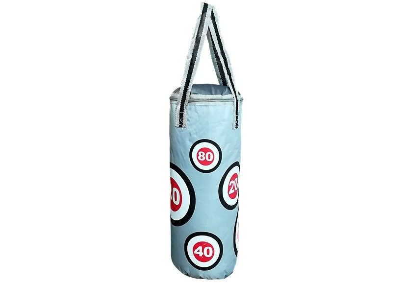 Sættet indeholder en boksebold og handsker, som er i universel størrelse velegnet til børnehænder. En fordel er boksebolden med mål og pointtal, hvor børn sigter og scorer point, hvilket øger motivationen for leg og træning. Bolden er ophængt og måler 37 cm i højden og 14 cm i diameter. Den samlede længde af den ophængte bold er 45 cm.