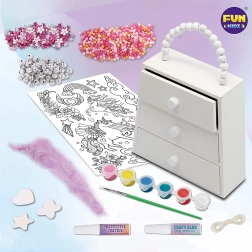 Lav dit unikke træ smykkeskrin i størrelsen 20x15x5,5 cm ved hjælp af dette sæt, der indeholder alt hvad du behøver. Kreativiteten kender ingen grænser, så du kan dekorere det efter din egen fantasi. Farverige perler og andre udsmykninger tilføjer dit mesterværk enestående karakter.