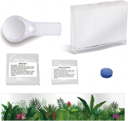Pakken indeholder alt hvad du behøver for at starte dit eventyr: akvarium, ernæringsgel, lup, klistermærke med planter og vejledning. Anbefales til børn fra 8 år.