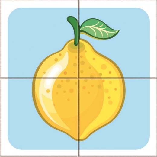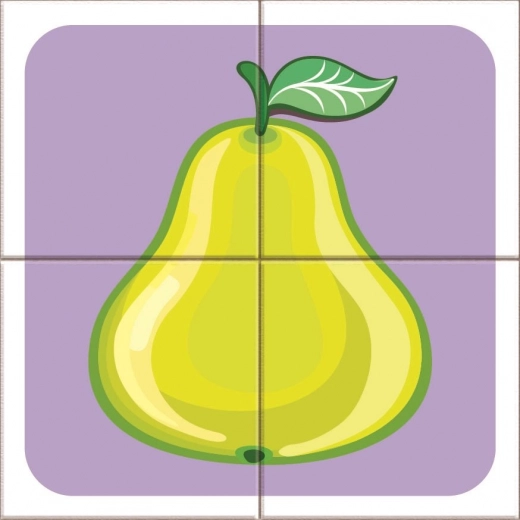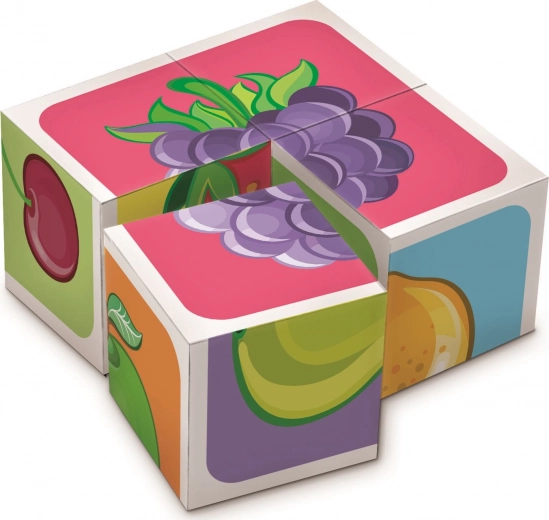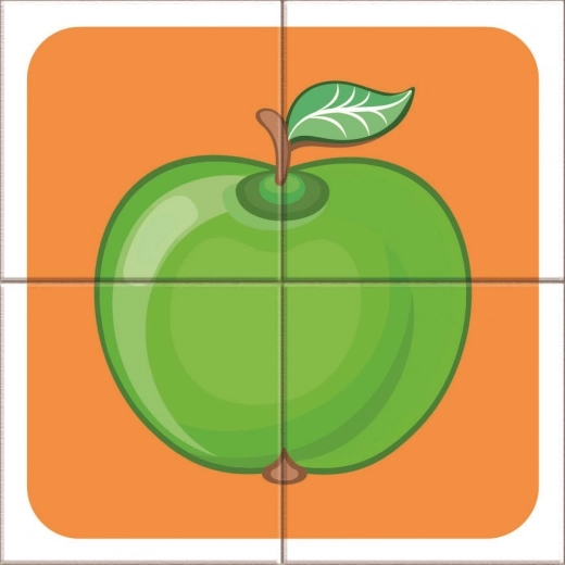 - 6 frugtbilleder af 4 klodser – let at samle for begyndere
