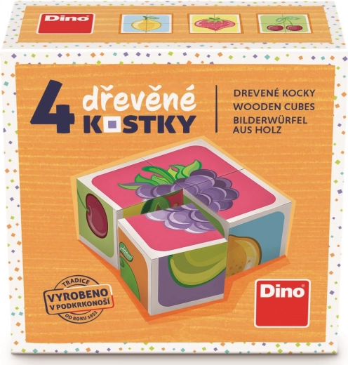Farvede træklodser med frugtmotiver fra Dino vil glæde små byggere fra 3 år. Af 4 klodser kan du samle 6 forskellige billeder af frugt eller bygge et lille tårn. Sikkert, af tjekkisk grantræ, og de støtter finmotorik, fantasi og kreativitet.
