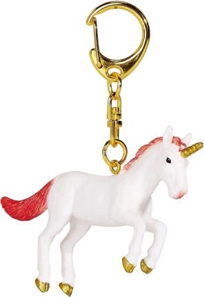 Den søde nøglering med en springende enhjørning betager både børn og voksne. Den er lavet af ftalatfri PVC og har metalkringel og karabin til nem fastgørelse på nøgler, rygsæk eller taske. Figuren er håndmalet med virkelighedstro detaljer og farver, så den er både et praktisk tilbehør og en stilfuld pynt.
