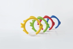 Hver ring er lavet af blødt, sikkert materiale, som ligger behageligt i hånden og er nem at holde om. En diameter på 14,5 cm sikrer et komfortabelt greb selv for mindre hænder, mens det attraktive fiske-design understøtter legen og motiverer til bevægelse.