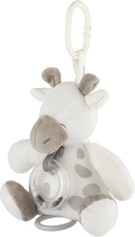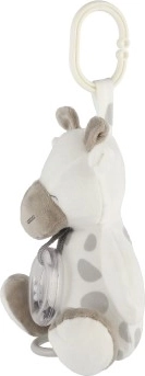 Takket være den praktiske clip/løkke fastgør du nemt giraffen til tremmeseng, barnevogn eller autostol – ideel både hjemme og på farten.