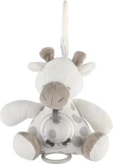En sød musikalsk plysgiraf i grå‑hvide nuancer, ideel til nyfødte og spædbørn. Takket være det bløde materiale, de behagelige toner og den praktiske ophængning hjælper den barnet med at falde i søvn og føle sig tryg. Blød at røre ved, beroligende melodier og sikker udformning uden skarpe kanter gør den til en fantastisk ledsager i seng, barnevogn og på farten.