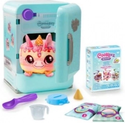 Forvandl din bagning til leg! Sættet COOKEEZ MAKERY is-kager – køleskab lader dig blande ”ingredienser”, ælte dejen, lægge den i formen, pynte med slim og vaffelplade og derefter skubbe det hele ind i det særlige ”køleskab”. Indstil temperaturen til −10 °C, luk lågen, og efter 20 sekunder venter en overraskelse – en velduftende plys-cupcake-figur, der ryster af kulde og laver sjove lyde.