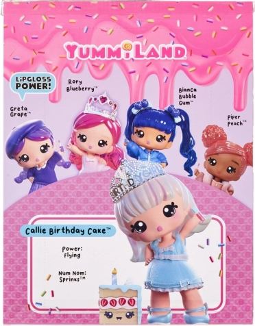 Oplev Yummilands magiske verden! Yummiland-dukke Callie kommer med sin egen DIY-lipgloss, som barnet selv kan lave af en basis, farve og duft. Nyd den kreative leg, den søde duft af “Birthday Cake” og saml flere Yummiland-heltinder for endnu flere kombinationer.