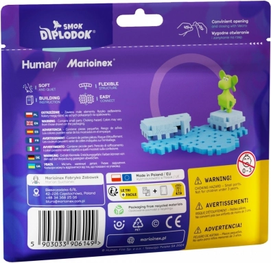 Leg med Mini Waffle udvikler finmotorik, kreativitet og rumlig forståelse. Diplodok-figuren inspirerer til historiefortælling og fantasi-fyldt leg. Materialerne er sikre og certificerede, produktet er fremstillet i Europa, og både emballage og klodser er lavet af genanvendelige og fornybare materialer.