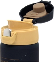 Åbning med én hånd, integreret drikketud og lås mod utilsigtet åbning. Dobbelt tætning beskytter mod spild – også i tasken.
