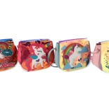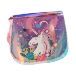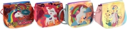 Taska er dekoreret med rolige motiver af enhjørninger og regnbuer, som understøtter børns fantasi og leg.