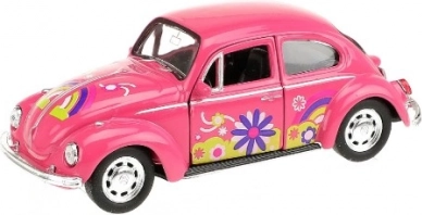 Denne detaljerede metalmodel WELLY VOLKSWAGEN Beetle i skala 1:32 kombinerer robust udførelse med et iøjnefaldende blomstret design i ægte 60’er-stil. Med en kompakt længde på 12 cm passer den i lommen eller tasken og gør ventetid og rejser sjovere. Pull-back mekanismen sikrer en lynhurtig start og masser af action, mens åbne døre og et omhyggeligt udført interiør understreger den realistiske oplevelse.