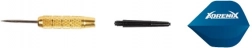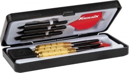 Dette alsidige sæt dartpile giver et sikkert greb og stabil flyvning takket være kombinationen af robust krop og kvalitetsflights. Metalspidser sikrer pålidelig indtrængning i dartskiven og konsekvent ydeevne ved hvert kast. Med det praktiske etui er pilene altid sikkert opbevaret og klar til at tage med.