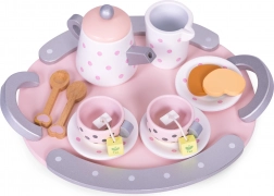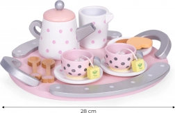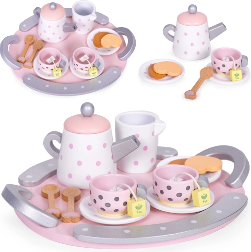 Med sættet kan barnet lege voksen og invitere på en lækker te og en sød snack. Udover sjov udvikler dit barn fantasi, finmotorik og lærer også at forberede te og kende bordskik.
