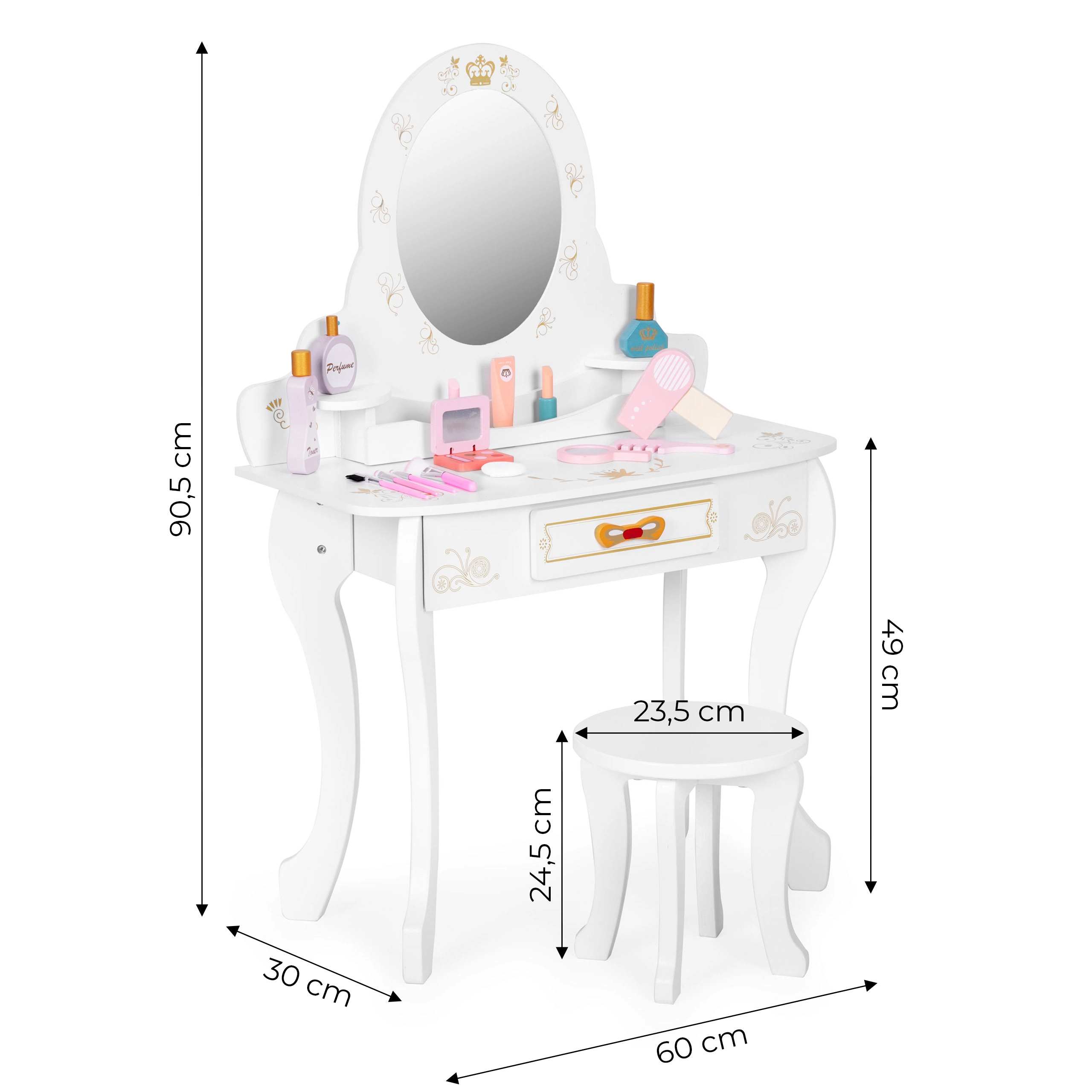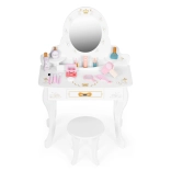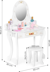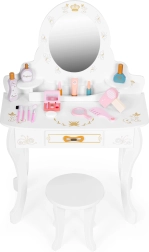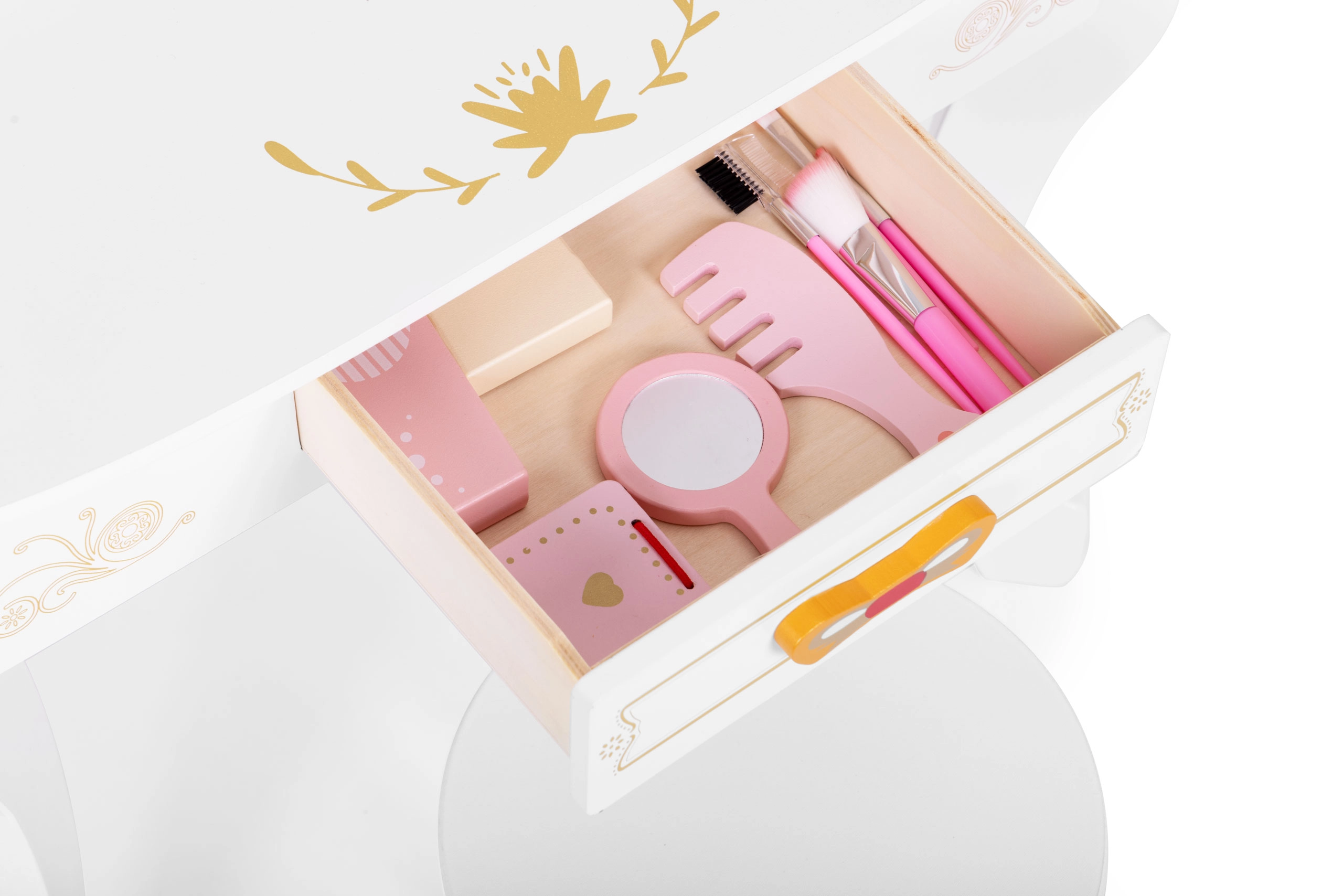 Toiletbordet har en stor udtrækkelig skuffe, der rummer alt det tilbehør, der er nødvendigt til den daglige makeup.