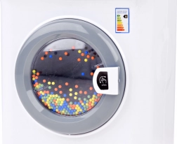 De gennemsigtige døre gør det muligt at se de farvede kugler i tromlen, som drejer under vask og simulerer en vandeffekt.
