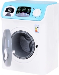 Denne børne-automatiske vaskemaskine er designet til at efterligne et rigtigt apparat så realistisk som muligt. Børn vil elske touchbetjeningen, den roterende tromle med vandeffekt og realistiske lyd- og lyseffekter. Åbningsbare døre og en udtræksskuffe til vaskepulver forstærker følelsen af rigtig vask.