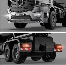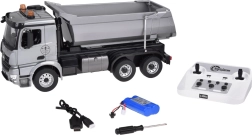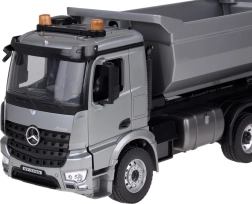 Realistisk RC tipvogn Mercedes‑Benz AROCS i skala 1:20 kombinerer metal-lad med detaljeret udførelse og fuld fjernkontrol. Nyd lys- og lydeffekter, elektrisk hævning og sænkning af ladet med en knap, gummidæk for fremragende greb og nemt automatisk parring på 2,4 GHz. Ideel til både små og store fans af entreprenørmaskiner.