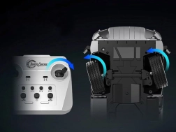 2,4 GHz fjernstyring sikrer glat kontrol, styring af lys og lyde samt elektrisk hævning/sænkning af ladet. Praktisk automatisk parring og strømbesparende tilstand. Store hjul med gummidæk med mønster holder kursen på forskellige underlag, og der er mulighed for justering af toe-in på forakslen.
