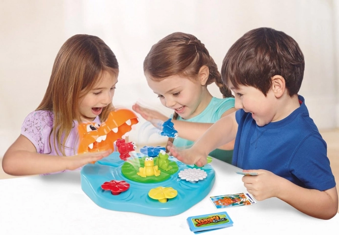 Spændingen stiger hver gang krokodillen vises på kortet. Den, der trykker på åkanden først, redder sin frø!