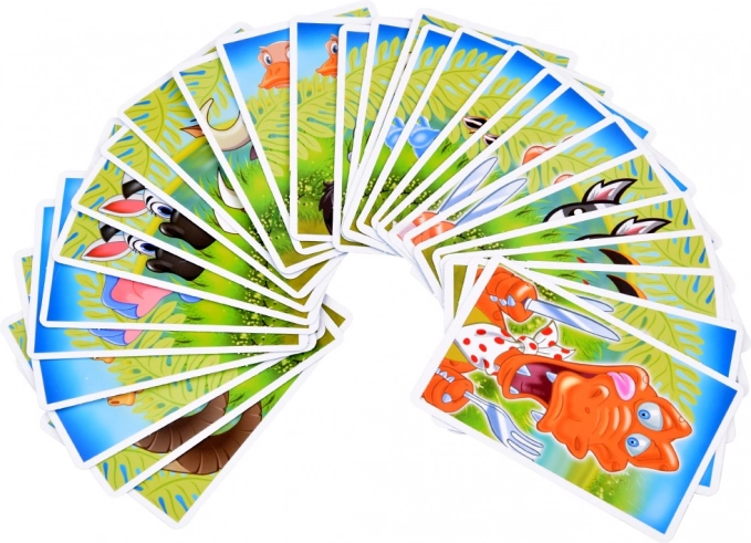 Vend et kort og se, om det er krokodillen eller et fredeligt jungledyr. Pas på falsk alarm!