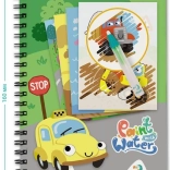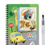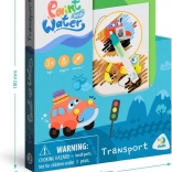 Kreativ blok med transporttema giver børn endeløs underholdning: fyld vandpenslen, stryg over siden, og se de klare farver og detaljer i biler, tog og fly komme frem. Når siden tørrer, vender illustrationerne tilbage til deres oprindelige udseende, så børnene kan male igen.