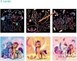 Oplev glæden ved kreativt skaberi med disse skrabebilleder, som indbyder til at afsløre skjulte farver. Sættet indeholder tre forskellige farverige billeder inspireret af My Little Pony og en særlig skrabepen: