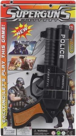 Denne raslelyd politipistol er ideel til børns politilege. Den er lavet af let og slidstærk plast, hvilket gør den nem at håndtere selv for små hænder.