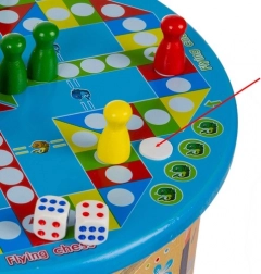Inkluderer en farverig spilleplade med brikker og terninger – ideel til hyggelige stunder og læring af spilleregler.