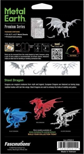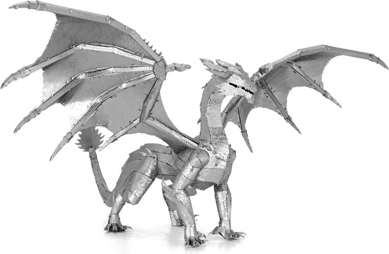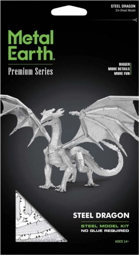 Byg din egen imponerende ståldrage fra METAL EARTH Premium Series. Metaliske 3D-puslespil med lasergravering giver et detaljeret udseende, en flot dekoration til hylde eller bord og en sjov udfordring for tålmodige byggere. Af flade stålplader opstår en realistisk model med store vinger og lang hale, som vil glæde både fantasy-fans og modelbyggere.