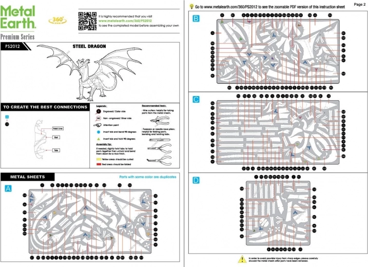 Byggesættet bruger låse og bøjede tappe, så du ikke behøver lim. Vi anbefaler små sidebidere og fine fladtænger (medfølger ikke) for ren afklipning af dele og præcise buk. Den færdige model er ideel som dekoration, gave til fantasy-elskere og som udvidelse af METAL EARTH-samlingen.