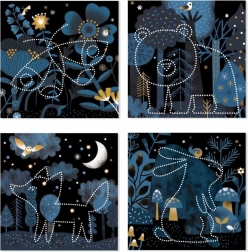 I pakken finder du alt, hvad der er brug for: 16 illustrerede baggrunde, 16 skabeloner, en perforeringsnål, en robust holder og et illustreret hæfte med vejledninger. Materialerne er af papir og pap med FSC-certifikat, så kreativiteten er ikke blot sjov, men også naturvenlig.