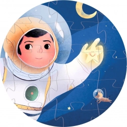 Dette smukt illustrerede puslespil tilbyder et unikt rumtema, hvor astronauten befinder sig på Månen. Puslespillet måler cirka 42 x 30 cm og er en fremragende måde at udvikle finmotorik og rumlig forestillingsevne.