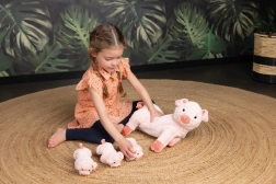Sættet med plyslegetøjet Smågrise med Mor tilbyder et meget blødt og behageligt materiale, der er ideelt til kram og leg. Mor har en praktisk lynlås på maven, hvor smågrise er skjult, hvilket er fantastisk til at udvikle følelser og plejende færdigheder hos børn. Denne funktion er desuden praktisk til rejser, da smågrisene kan være sikkert gemt.