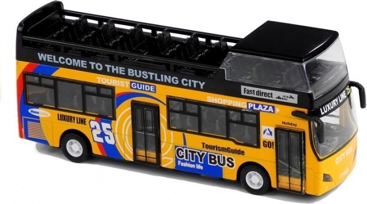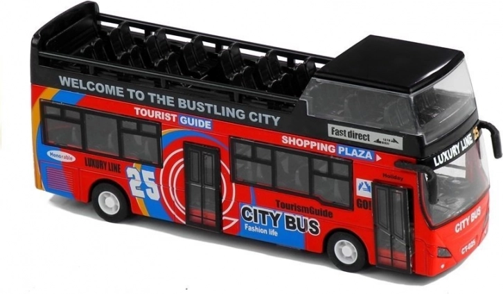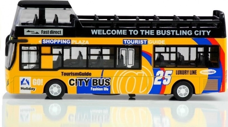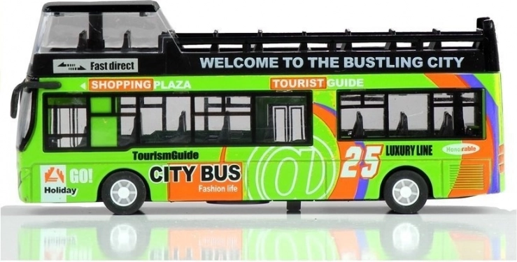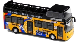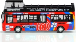 Den realistiske model af en dobbeltdækkerbus giver timevis af underholdning og stimulerer børns fantasi. Takket være den høje kvalitet og det robuste materiale tåler den selv intensiv leg. Bussen er inspireret af klassisk design og kører ved hjælp af en pull-back mekanisme. Funktionelle lys og lyde beriger legeoplevelsen, mens det detaljerede interiør med sæder og rat muliggør autentisk leg.