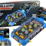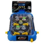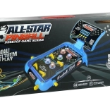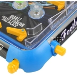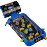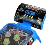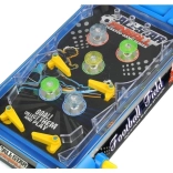 Flipperspillets design ligner en miniudgave af en klassisk spilleautomat. Spillefladen er forbundet med to ben og en pointtæller, hvis placering spilleren kan justere efter behov. Takket være benene er pladen placeret i en vinkel, der giver fantastisk underholdning samt nem affyring af kuglen opad. En stor fordel ved legetøjet er dets design, dekoreret med fodboldmotiver. Den blå kabinet af spillepladen er kombineret med en mørk baggrund, som ser fantastisk ud, når de farvede lys tændes. Når spillet er forsynet med batterier, trykkes på ON/OFF-knappen og derefter på START-knappen ved siden af. Hvis du vil tilføje lyde til spillets spænding, skal du blot trykke på musikknappen. Den sidste knap er mærket TOP SCORE; når du trykker på den, vises den højeste opnåede score. Vi tror, at denne funktion kan motivére dig til at yde endnu mere i næste spil. Om nødvendigt kan tælleren nulstilles, og spillet startes forfra.