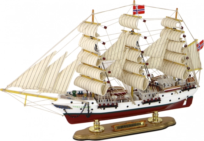 Det træbaserede samlerskib *Sorlandet* er en smuk model med autentiske detaljer og norsk flag, som vil glæde enhver elsker af søfartshistorie.