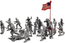 Sættet indeholder soldater i tre farver (sølv, orange, grøn) og fire flag (Tyskland, Storbritannien, USA, Japan), som hjælper med opdeling af enheder og udvikler fantasien. Alt er fremstillet af certificeret plast og opfylder EN71-standarden.