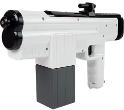 Denne stilfulde vandpistol i sort-hvid farvekombination er ideel til kampe i haven, på stranden og ved poolen. Takket være de kompakte mål er den nem at styre og præcis, så selv mindre børn kan bruge den uden problemer. Fyld blot den aftagelige tank, tryk på aftrækkeren, og brug pumpen til at skabe en kraftig vandstråle.