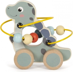 Dinosauren tilbyder leg med skubning på hjul og en interaktiv labyrint med perler, der udvikler både fin- og grovmotoriske evner hos børn.