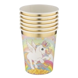 Disse papkrus med et magisk enhjørningemotiv giver din fest en eventyrlig atmosfære. Med det praktiske volumen på 250 ml er de ideelle til juice, sodavand og vand. Den elegante guldkant fuldender bordets festlige udsmykning og kan nemt kombineres med andre festtilbehør.