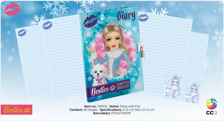 Giv en glæde til små skribenter med en smuk dagbog, der beskytter deres privatliv. Takket være den metallås med to nøgler forbliver alle tanker sikre. De solide omslag med Besties i limited edition og snefnug imponerer ved første øjekast.
