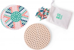 Træplade, robuste pinde og en bomuldspose til transport og opbevaring. Legetøjet giver mange timers kreativ underholdning.